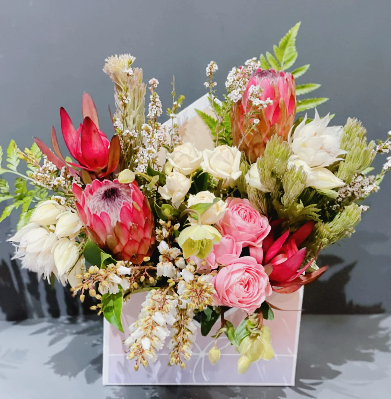 Please note: Flowers are seasonal dependant. All pictures are examples, please trust our creative and passionate florists to choose the best seasonal blooms for you.